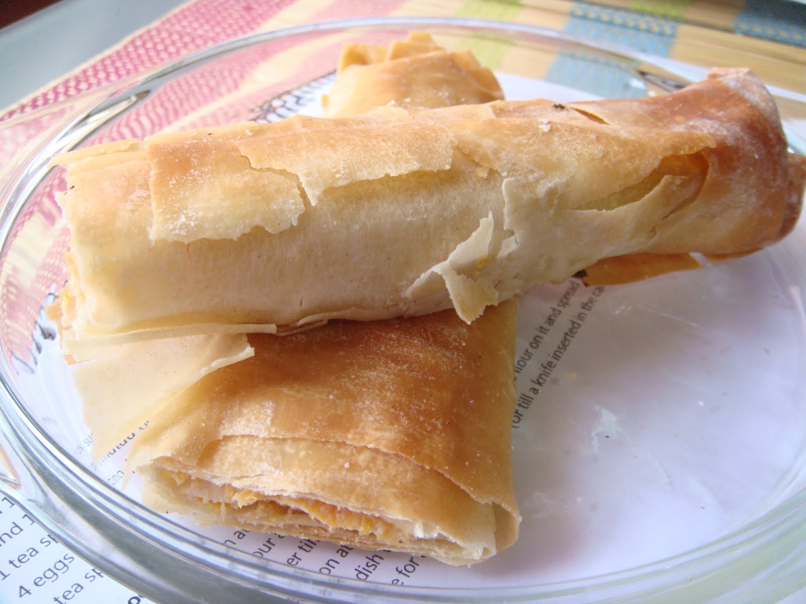 when all the phylla are rolled and ready brush them with melted butter and put them in the oven.